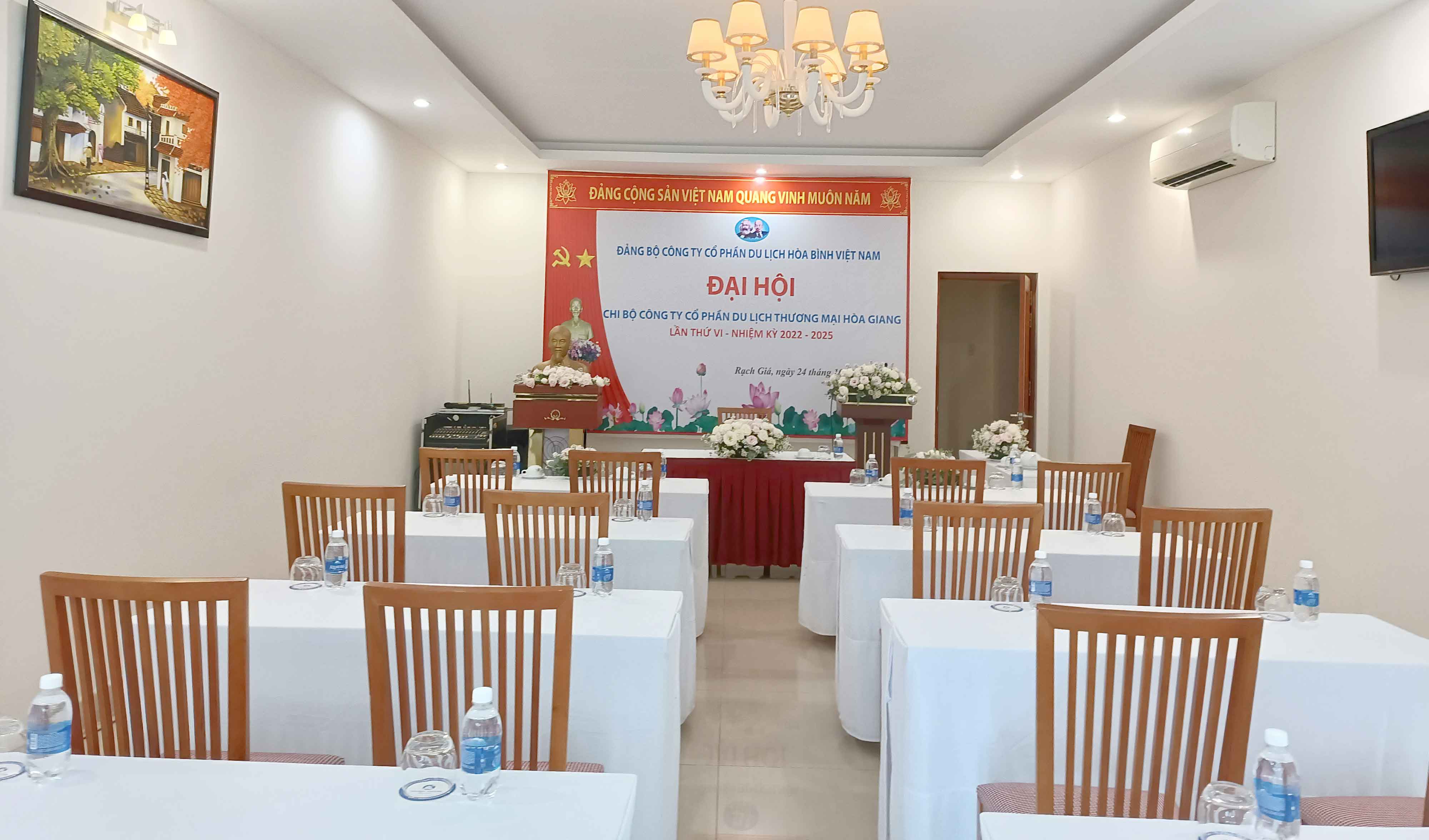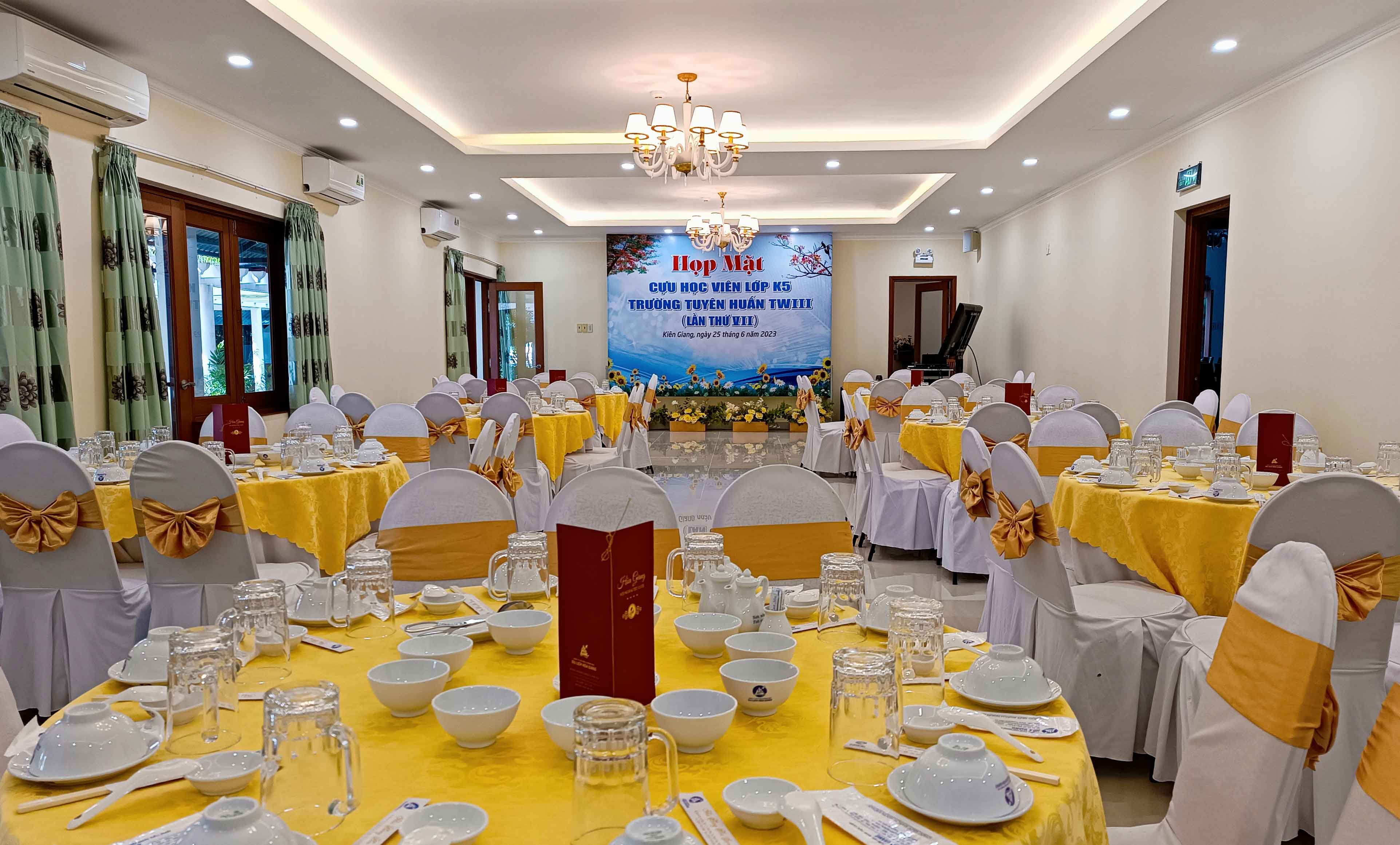 Nằm trong khuôn viên của nhà hàng Hòa Giang, được thiết kế phù hợp cho buổi hội thảo, tập huấn, hội họp nhỏ. Sức chứa tối đa 50 người. Với đội ngũ nhân viên chuyên nghiệp, tư vấn và hỗ trợ nhiệt tình, nhất định sẽ mang đến sự hài lòng và giúp cho sự kiện của quý khách thành công như mong đợi.