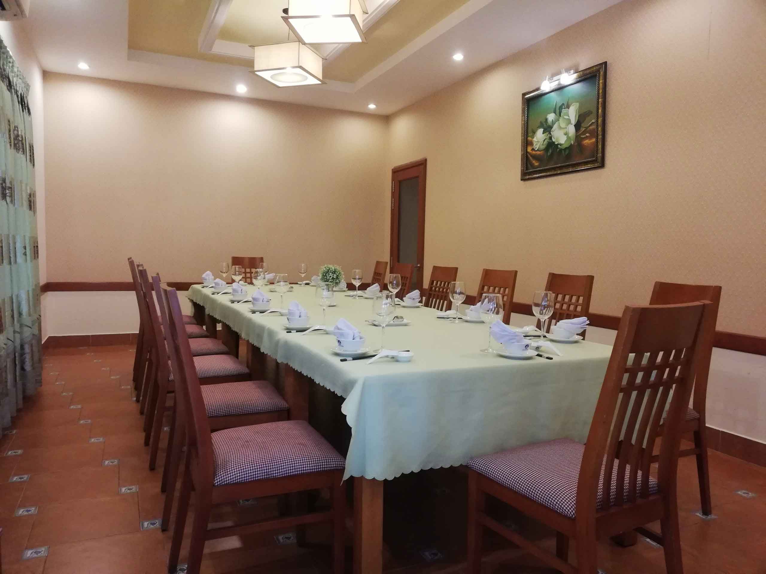Nằm trong khuôn viên của nhà hàng Hòa Giang, được thiết kế phù hợp cho phòng họp nhỏ. Sức chứa tối đa 12 người. Với đội ngũ nhân viên chuyên nghiệp, tư vấn và hỗ trợ nhiệt tình, nhất định sẽ mang đến sự hài lòng và giúp cho sự kiện của quý khách thành công như mong đợi..