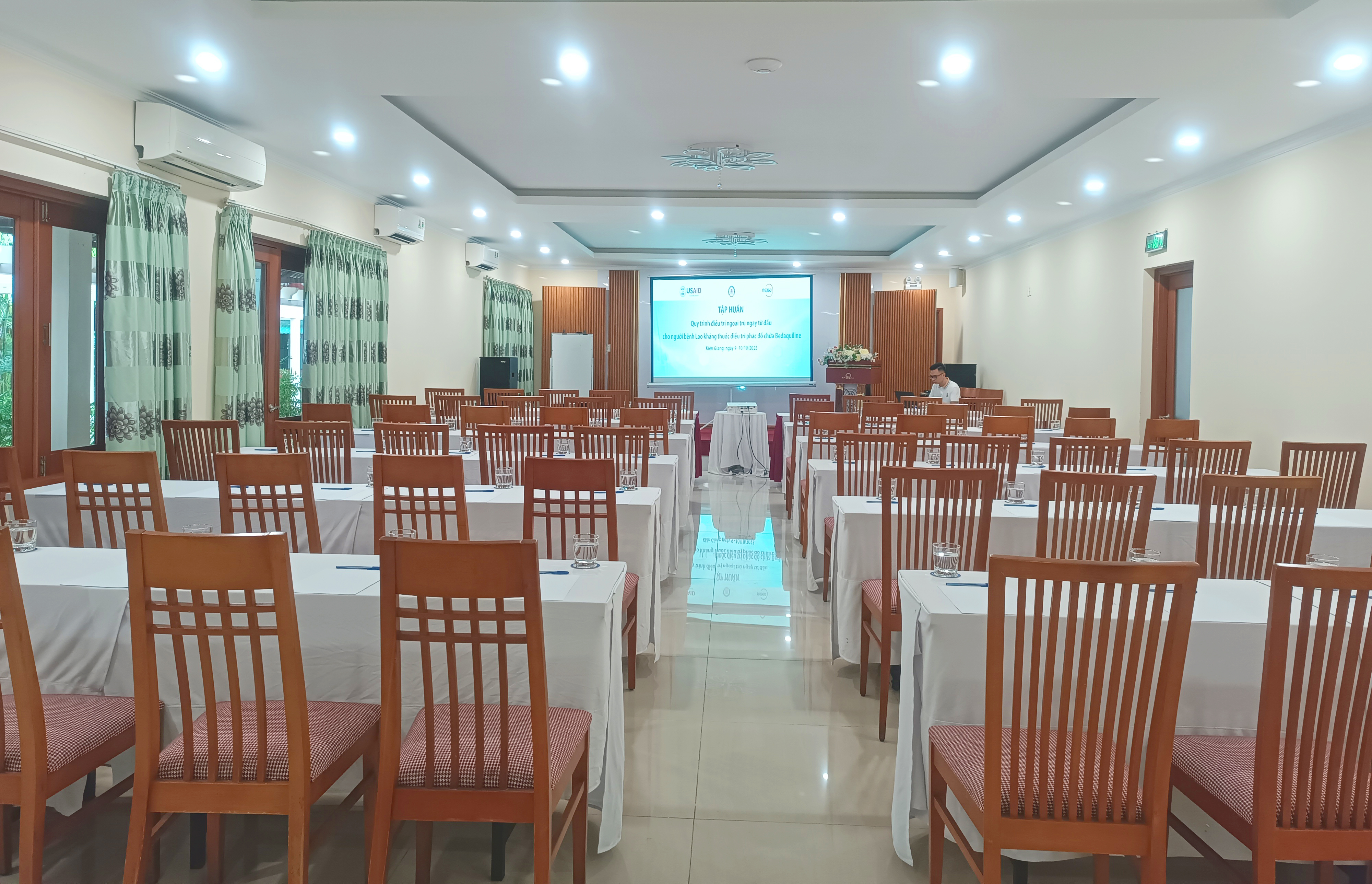- Sân khấu, 01 bục phát biểu