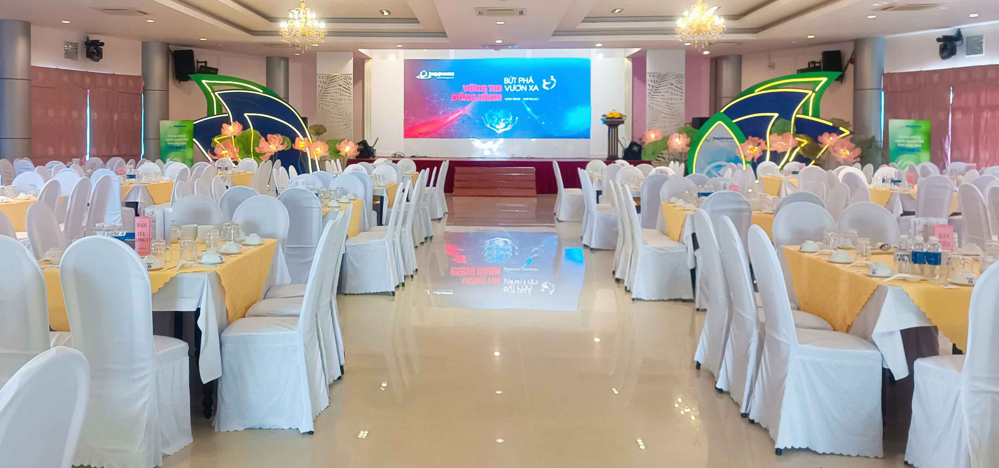 Chúng tôi tự hào sánh ngang cùng các trung tâm tiệc và hội nghị cao cấp tại các thành phố lớn trong nước. Cùng với việc nâng cấp toàn bộ hệ thống, Trung tâm Hội nghị - Tiệc cưới Hòa Giang có tổng công suất phục vụ cùng lúc tại tất cả các nhà hàng, sảnh tiệc, hội nghị hơn 3.000 thực khách.