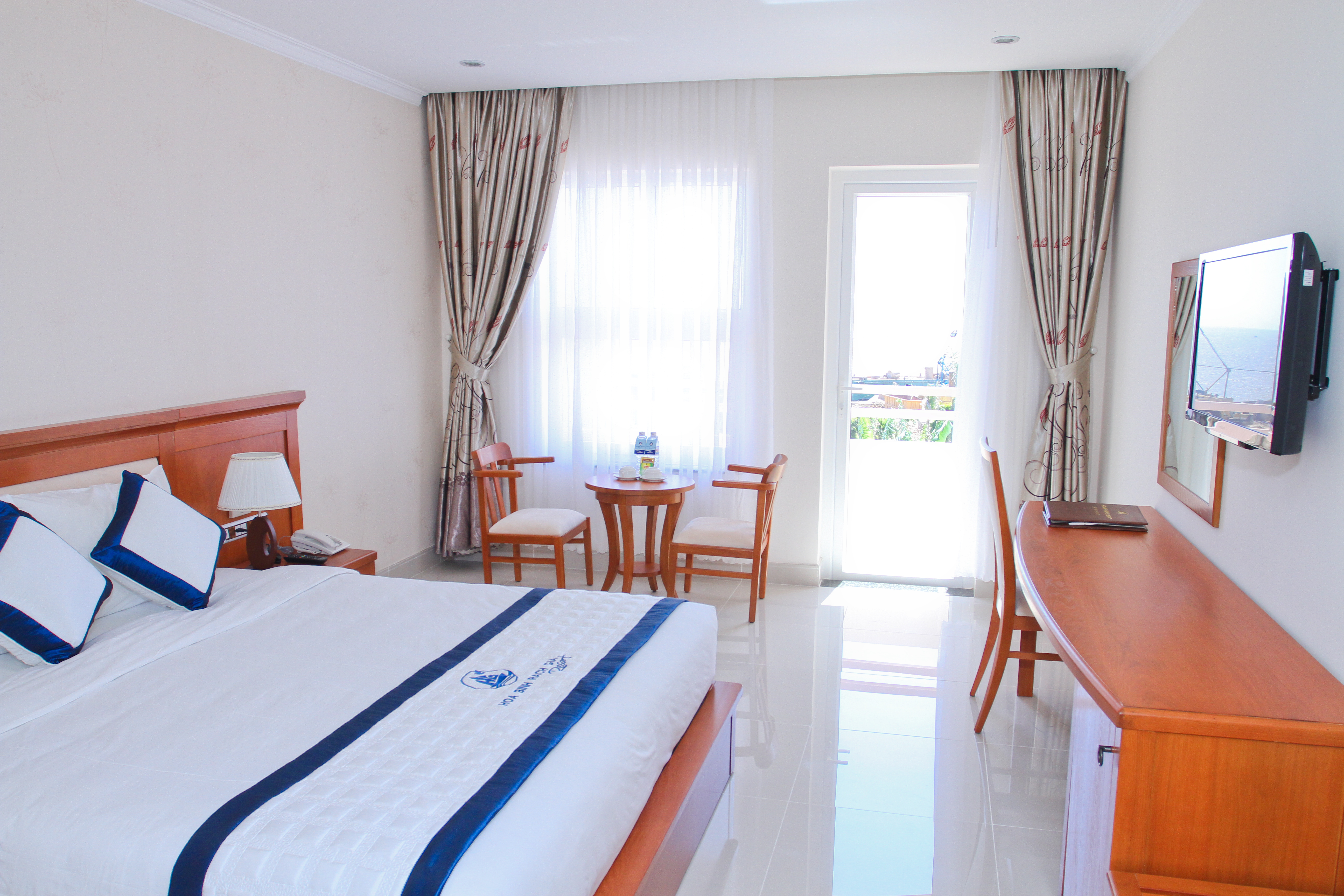 Looking towards the green and poetic garden of Hoa Binh Rach Gia Resort with large windows, modern equipment, and harmonious decoration, our Superior room meets your needs for high-class rooms during your stay in the coastal city of Rach Gia.